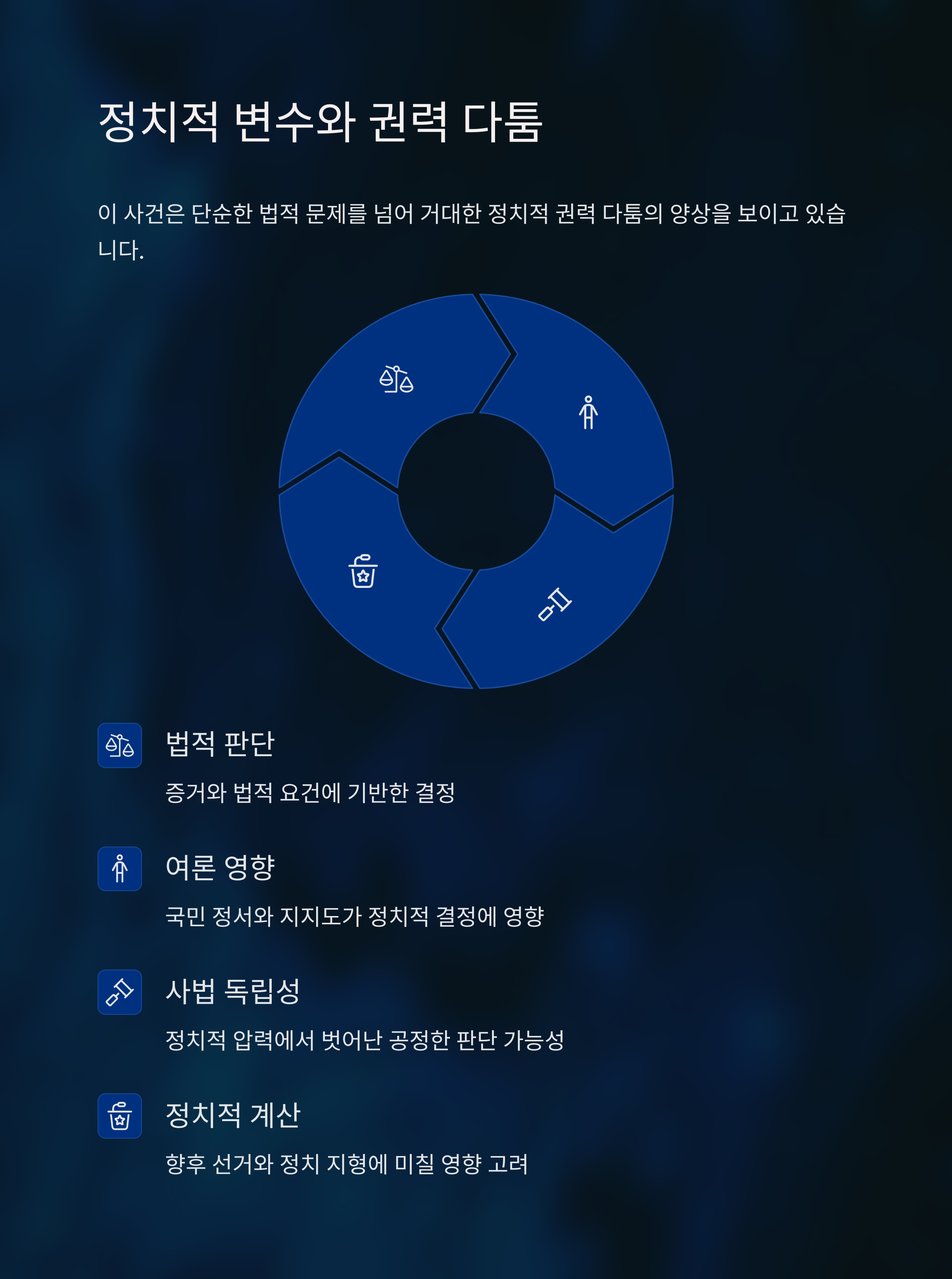 5. 이번 사안은 향후 한국의 정계와 법치 체계에 심각한 파장을 줄 가능성이 높습니다.