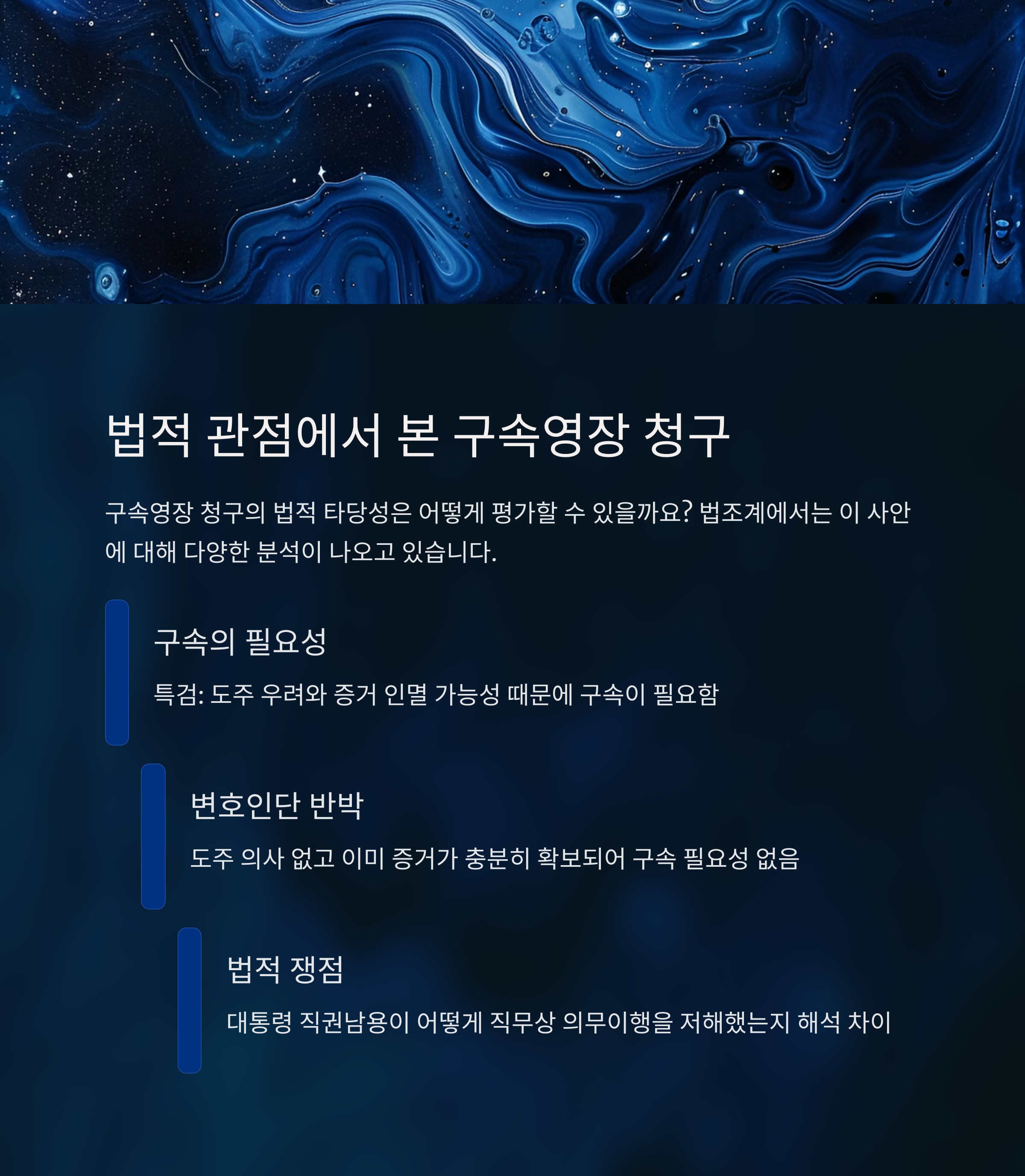 구속영장을 청구한 이유는 "도주 우려"와 "증거 인멸 가능성" 때문이라는 의견이 있었습니다. 그러나 윤성열 전 대통령 변호인단은 이 점을 강력히 반박하며 피의자가 도주할 의사도 없고, 이미 관련 자료가 충분히 확보되었다고 주장하고 있는 상황입니다. 혐의와 관련된 법적 쟁점은 대통령 신분의 직권남용이 직무상 의무이행을 어떻게 저해했는지에 대한 해석 차이에 있습니다.