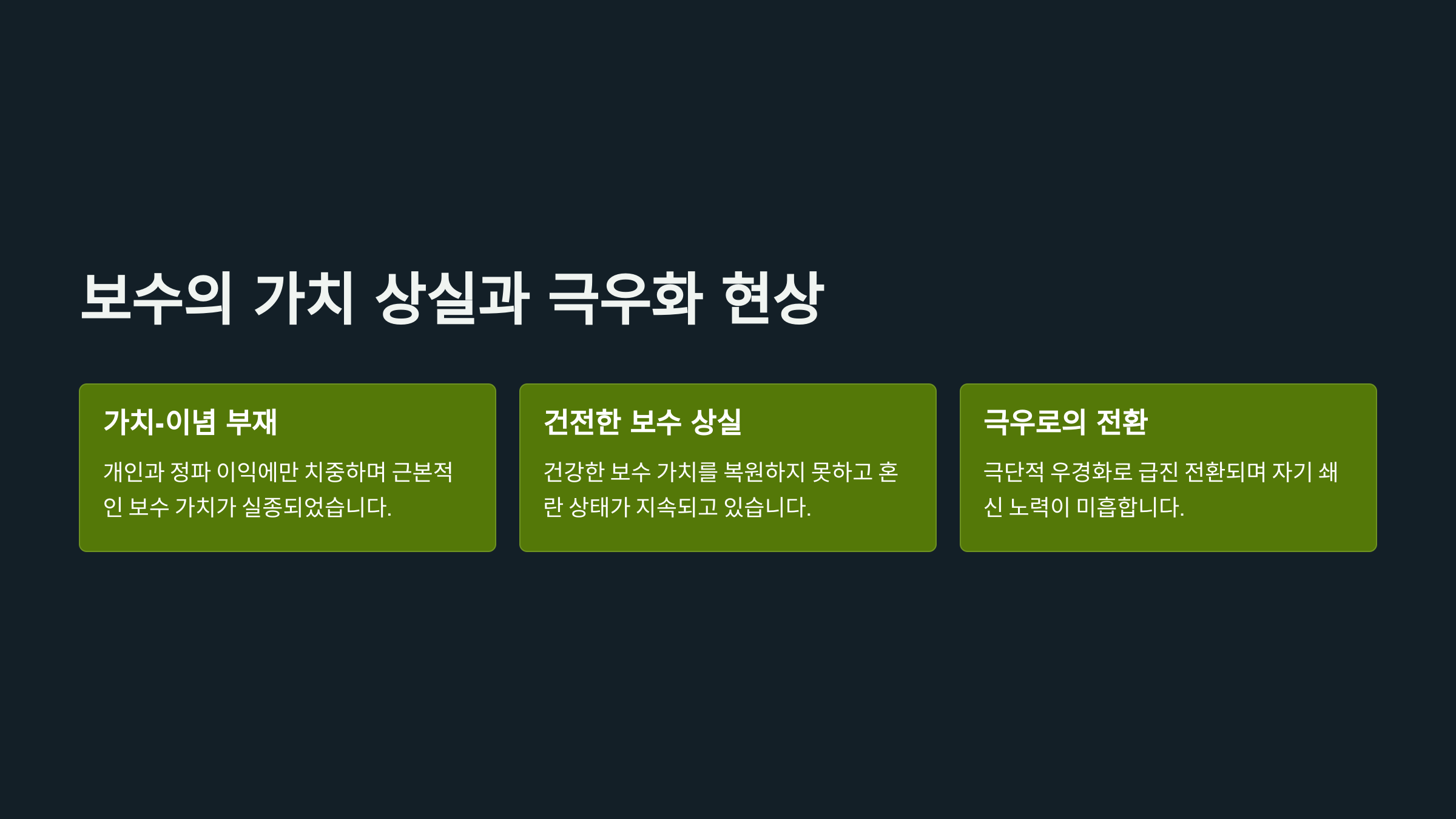🧠 보수 진영의 현실과 심리적 함정