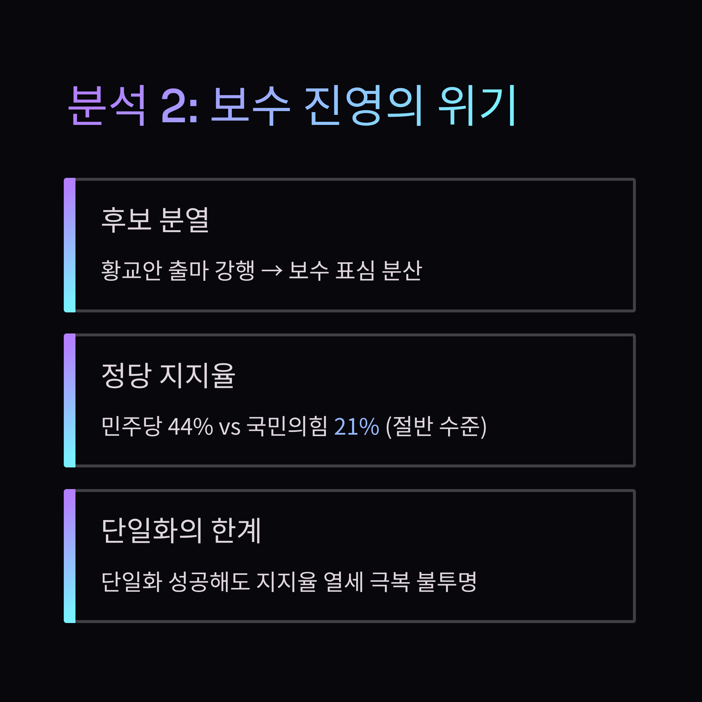 - 분석 2: 보수 진영의 위기: 심각한 분열과 지지율 열세