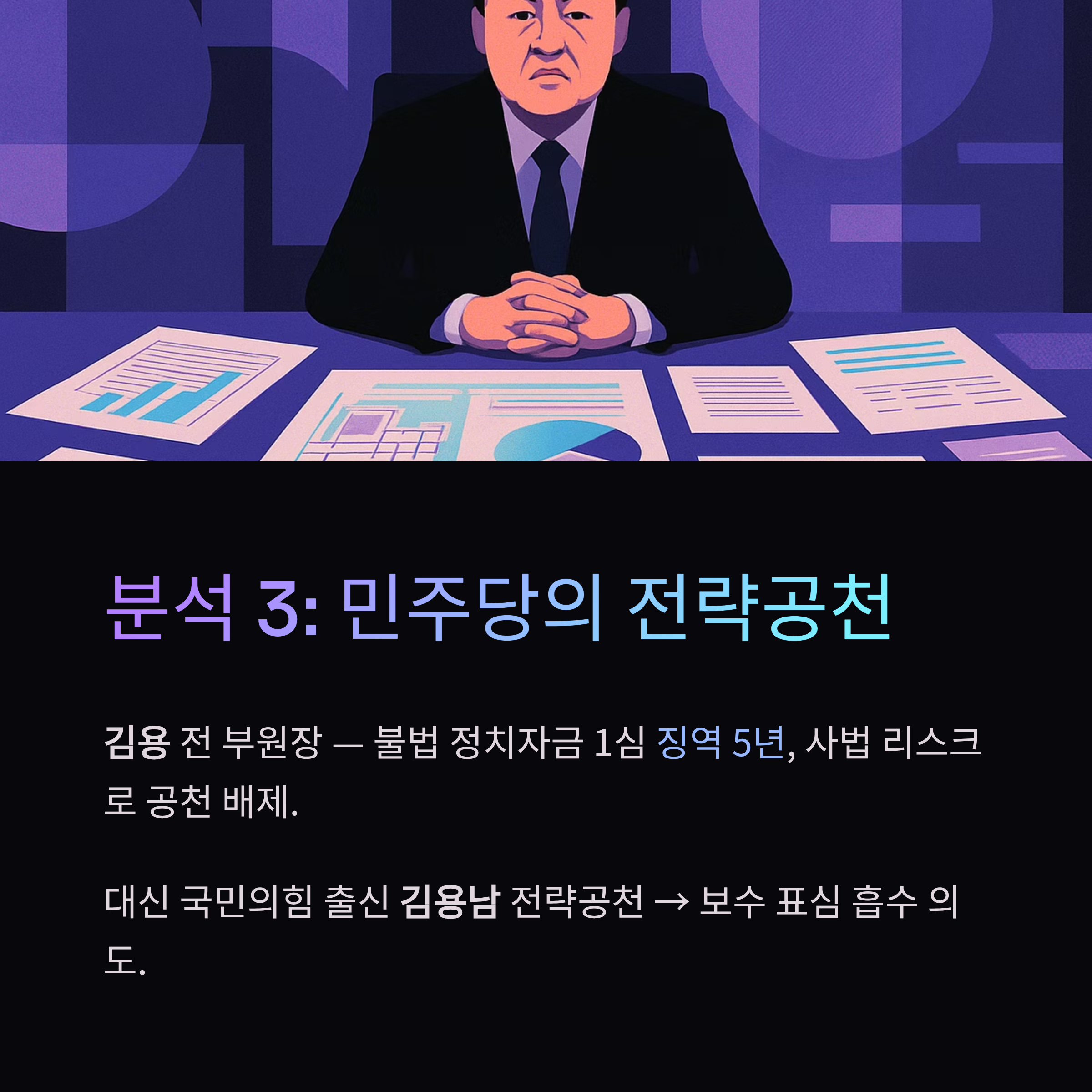 - 분석 3: 민주당의 전략적 선택: '사법 리스크' 김용 대신 김용남