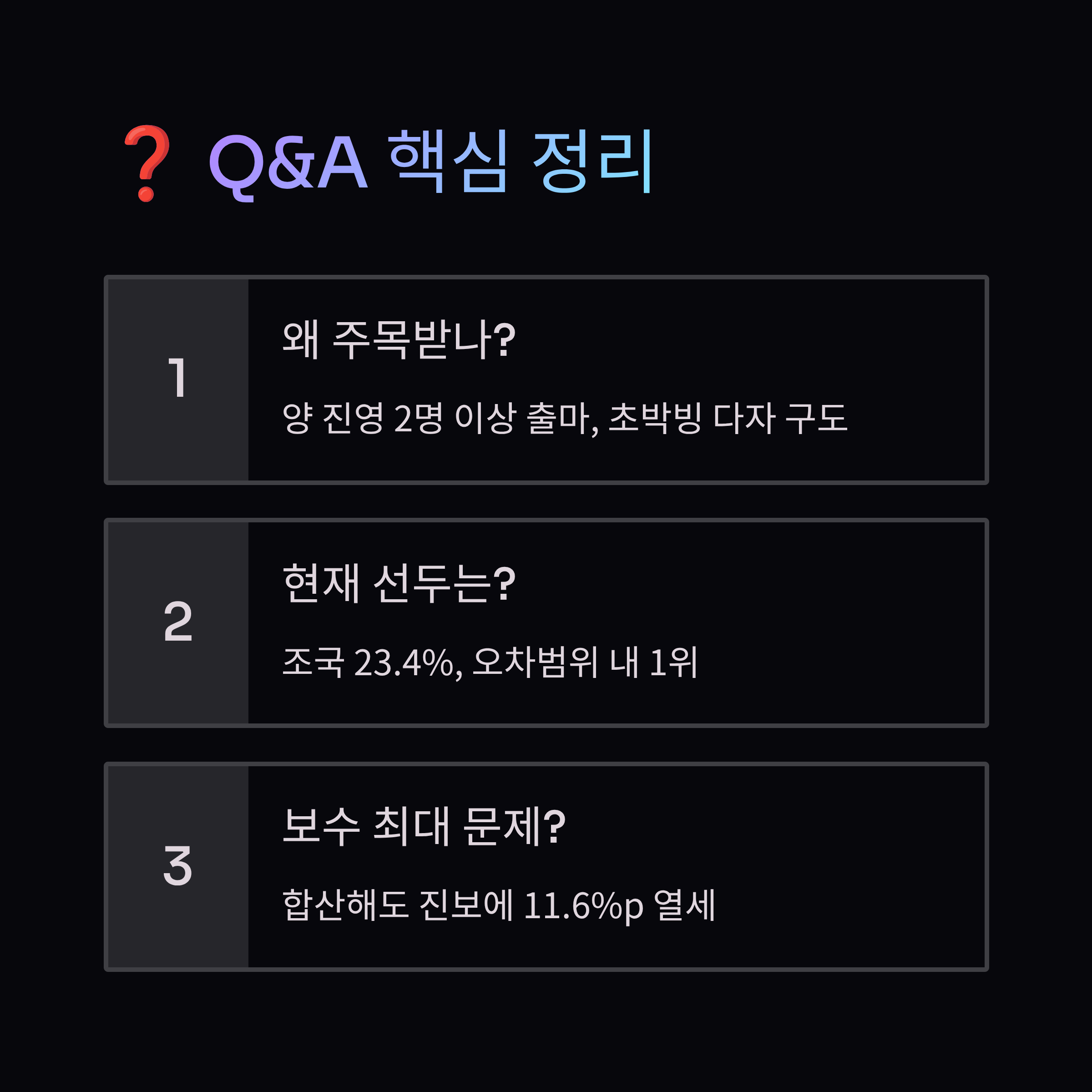 | Q. 현재 여론조사상 가장 앞서는 후보는 누구인가요? |