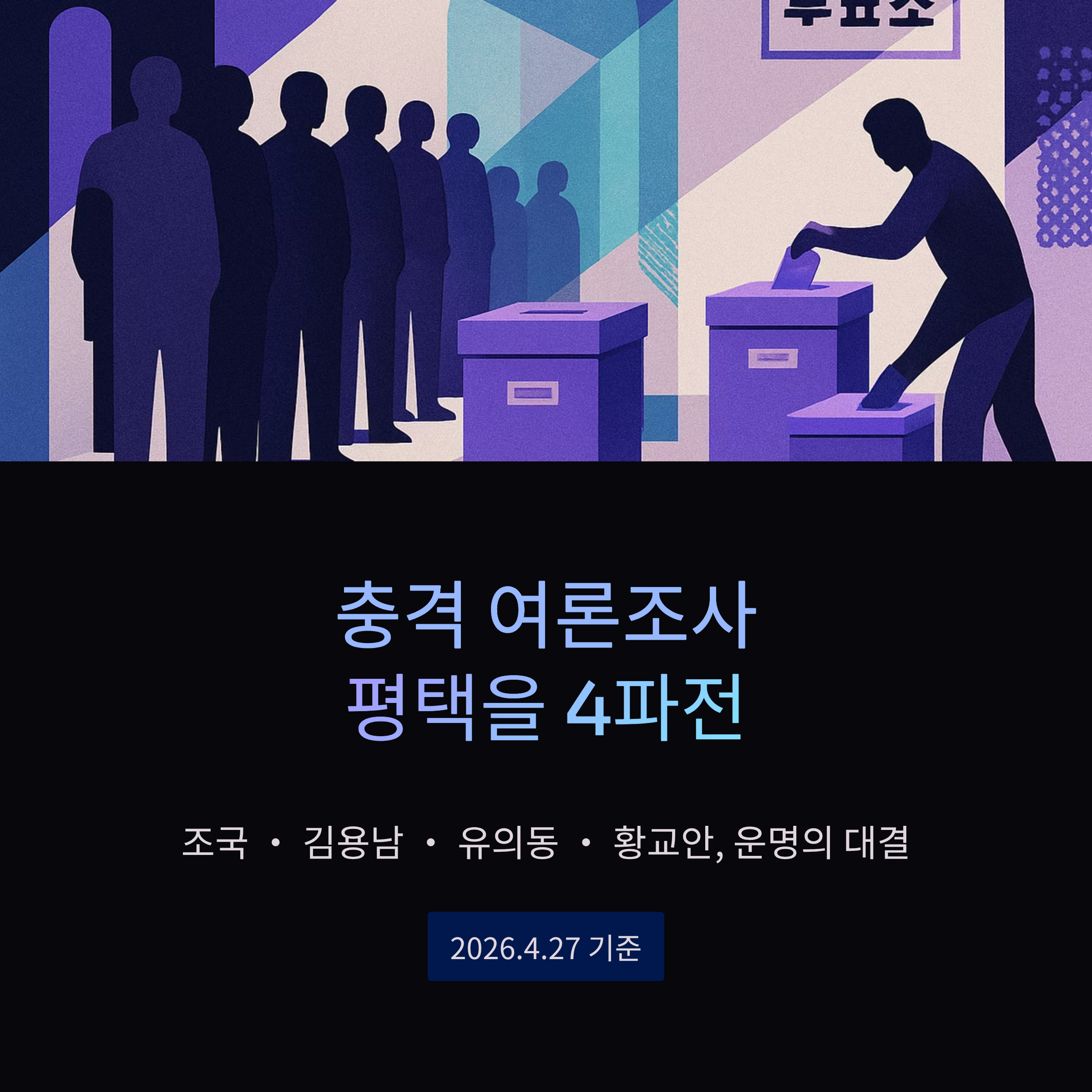 평택을 충격 여론조사, 조국 김용남 유의동 황교안 맞붙었다 (2026.4.27)