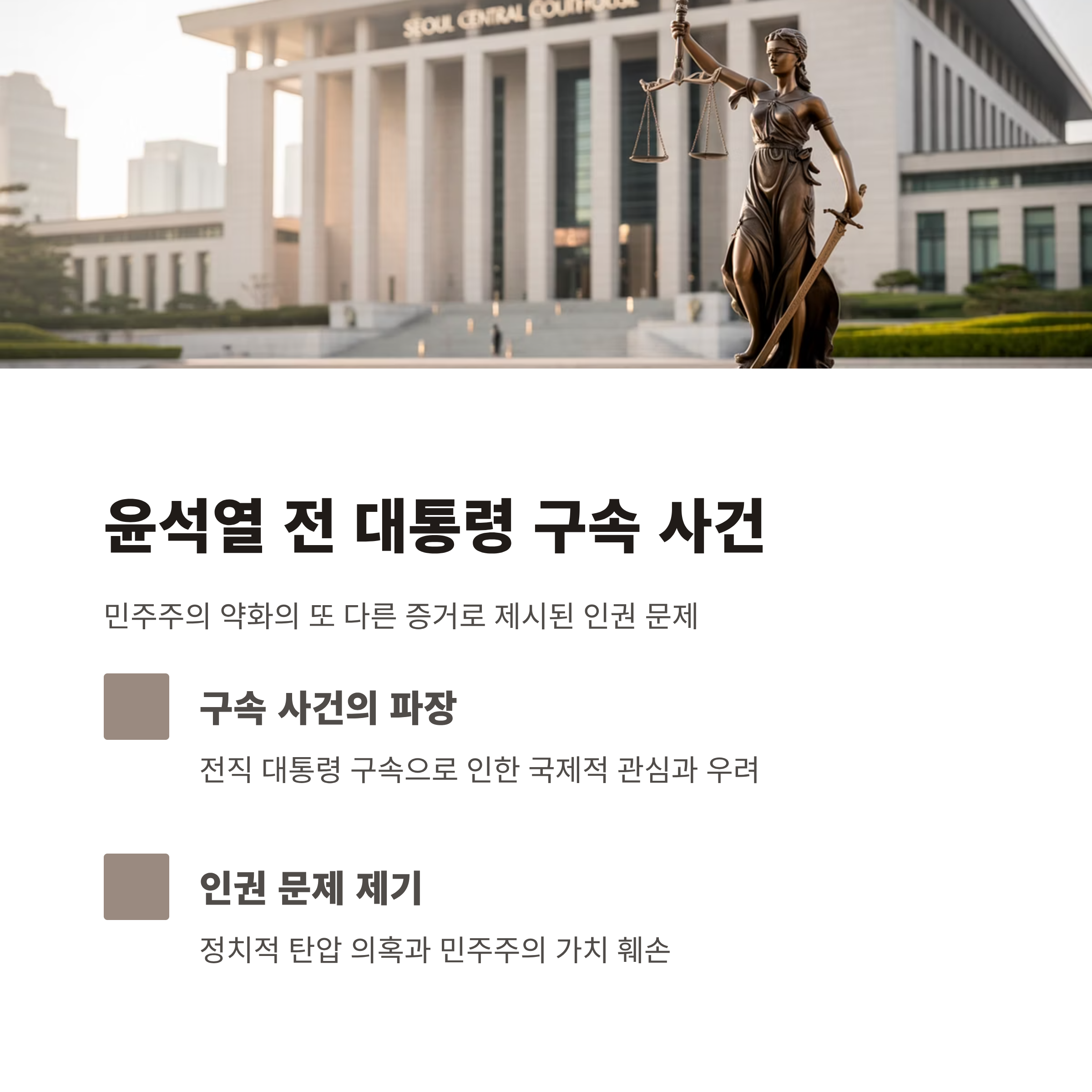 - 또 다른 이슈로는 윤석열 전 대통령의 구속 사건과 관련 인권 문제를 포함해 민주주의 약화 우려를 제기했습니다.