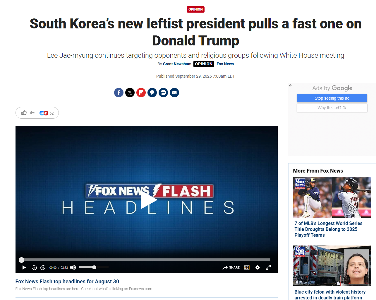 관련 태그: 이재명, 한미동맹, 폭스뉴스, 종교탄압, 대미투자, 한국정치, 반미시위, 국제관계