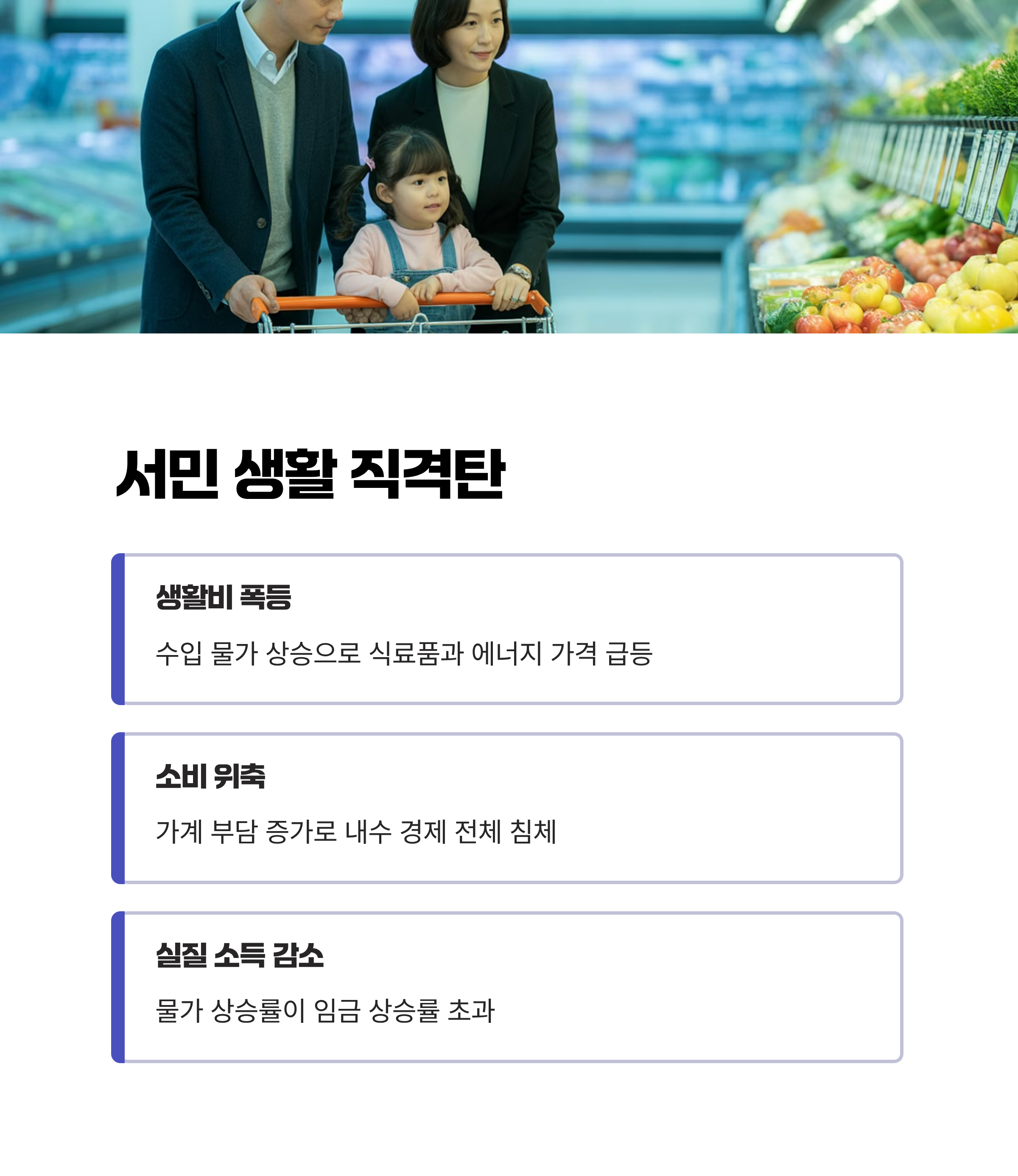 3. 수입 물가 상승으로 생활비 증가, 생산비용 상승, 소비 위축 등 악영향 발생.