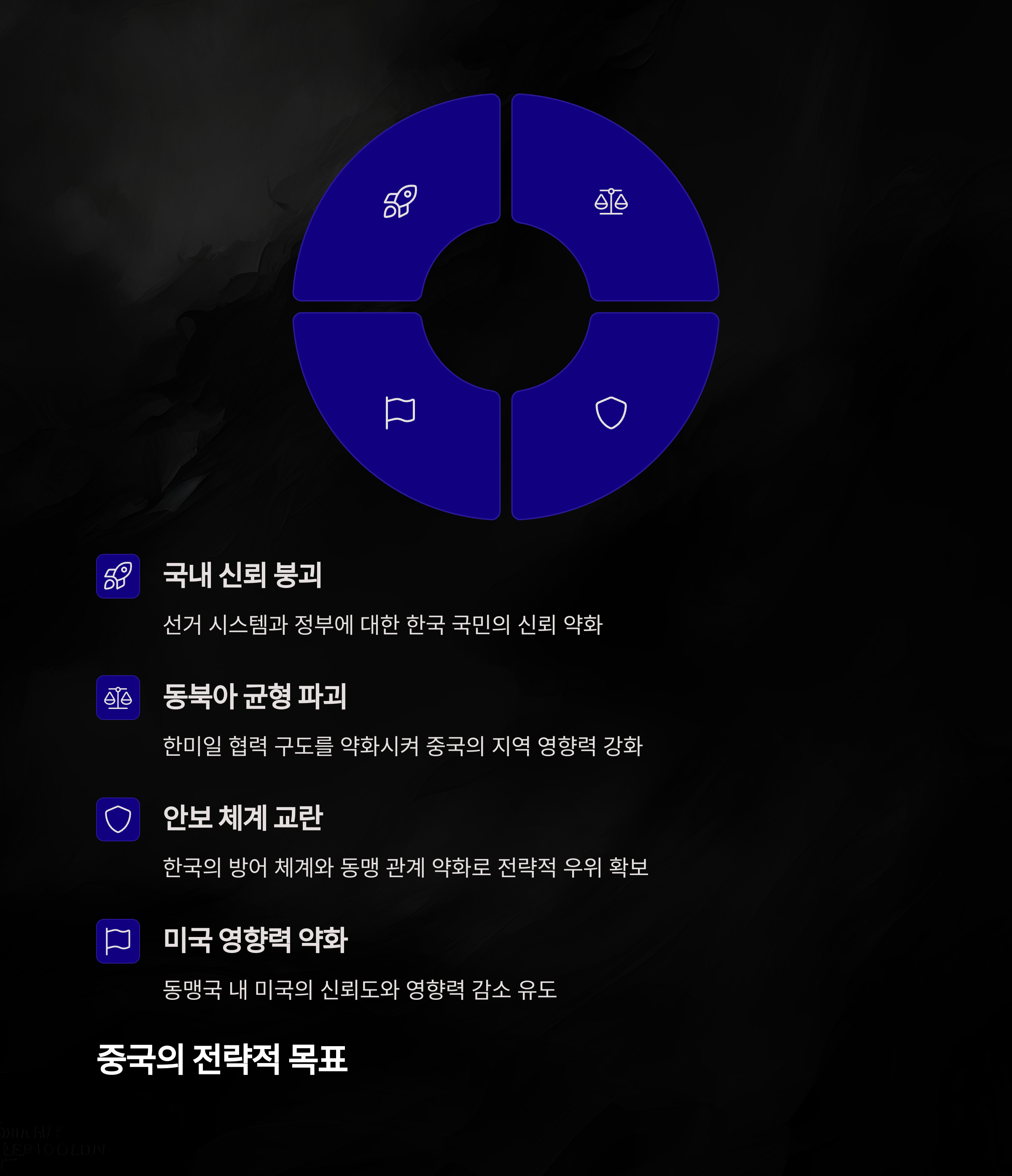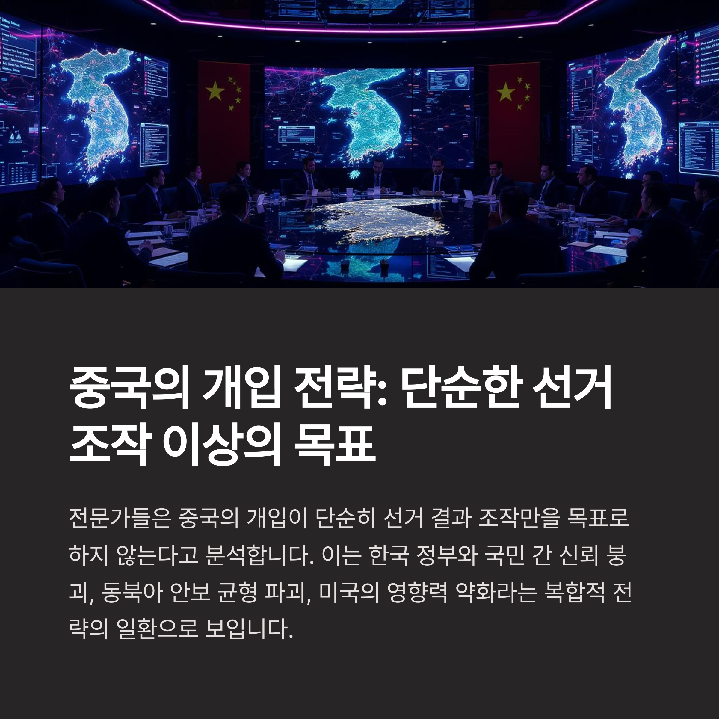 최근 제기된 한국 부정 선거 의혹에서 중국 정부의 개입 가능성은 큰 국제적 관심을 받고 있습니다. 특히, 중국산 통신 장비와 SK텔레콤 시스템 해킹 시도 사례가 이를 뒷받침하는 사례로 논의됩니다. 전문가들은 이러한 개입이 단순히 선거를 조작하려는 의도를 넘어, 한국 정부와 국민 사이의 신뢰를 저하시키고 동북아 지역의 안보 균형을 깨뜨리려는 광범위한 전략의 일환일 수 있다고 지적합니다.