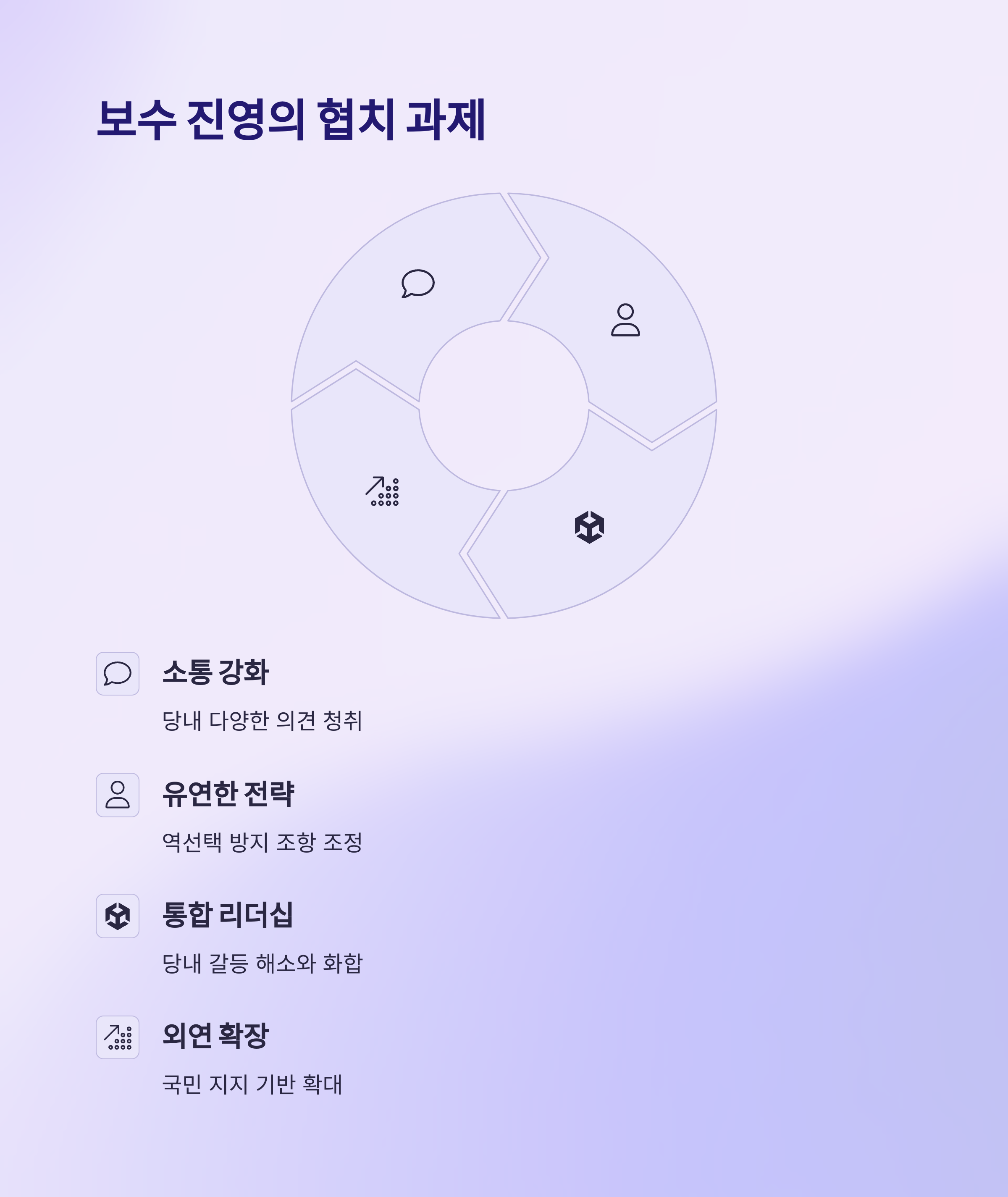 - 입장 발표를 통해 보수 내 유연함과 협치의 자세를 보여줌.