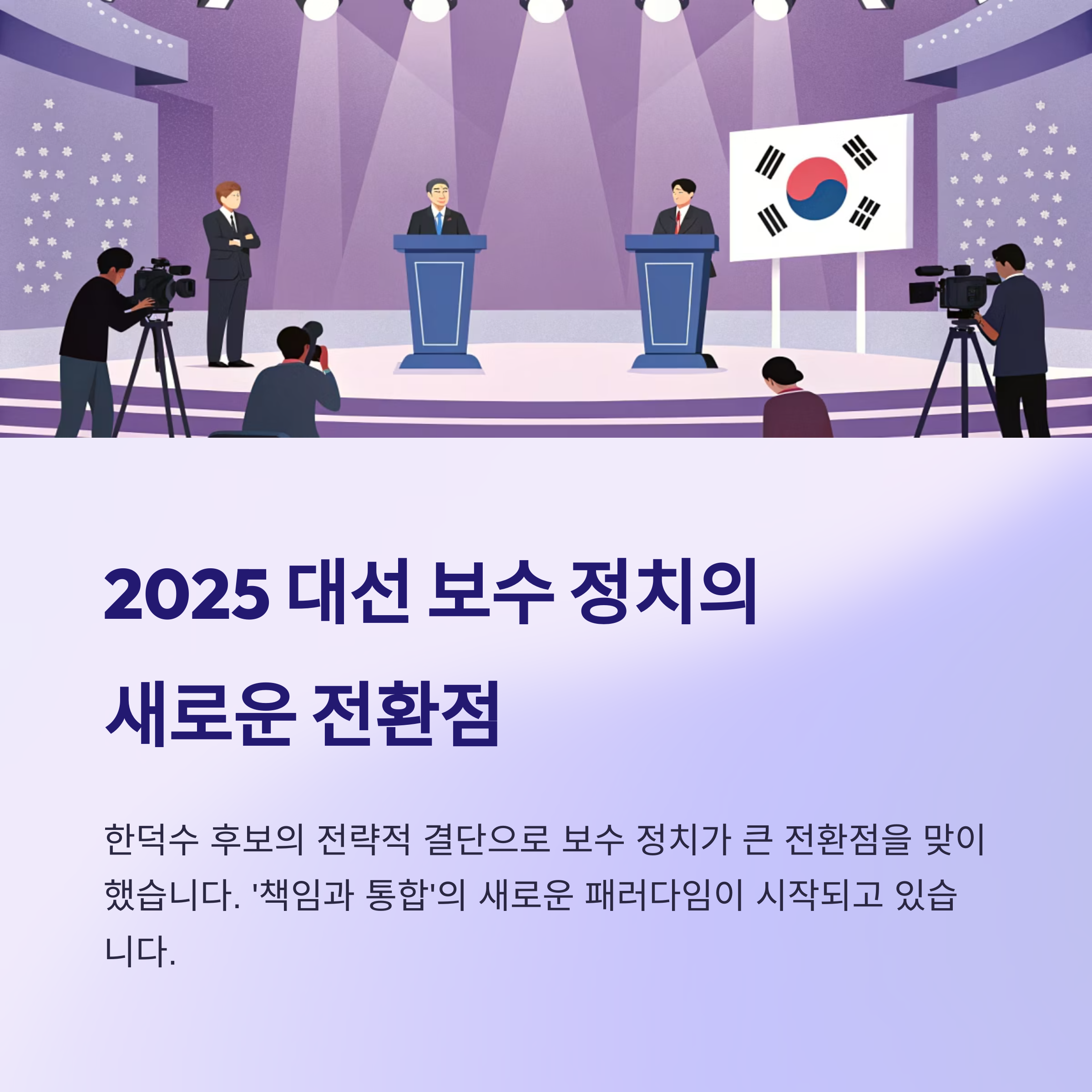 한덕수 후보의 긴급 입장 발표는 보수 정치의 전통과 현재, 그리고 미래를 아우르는 상징적 장면이었습니다. 정치적 사익보다 공당의 존립과 대선 승리를 우선시한 그의 선택은 향후 정계에서 오래 회자될 만한 장면이 될 것입니다.
