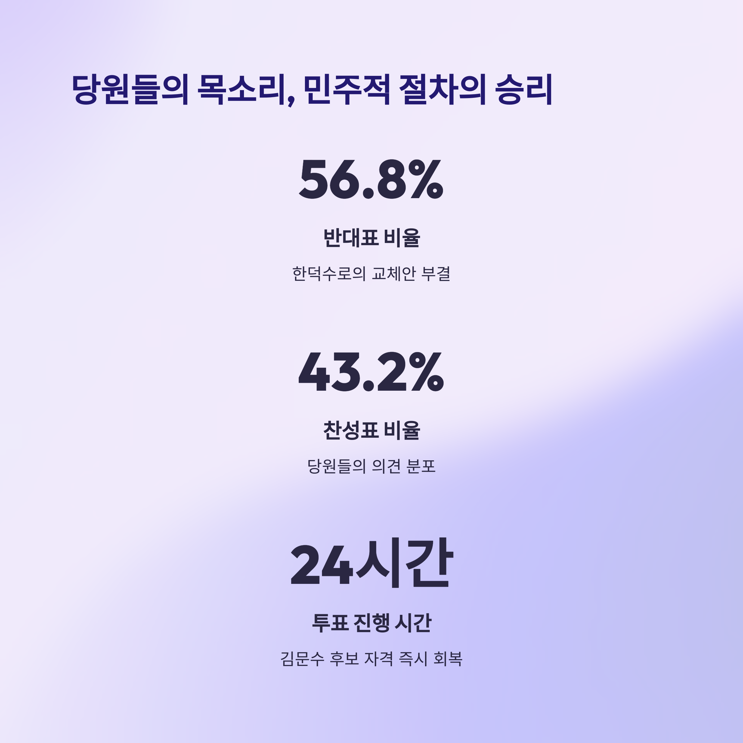 한덕수 후보는 이번 입장문에서 정당과 당원의 뜻을 최우선으로 삼겠다는 입장을 명확히 했습니다. 이는 단순히 선거에서의 경쟁 구도를 넘어, 정당 민주주의의 원칙을 실현한 사례로 볼 수 있습니다. ‘개인의 정치’보다 ‘정당의 정치’를 앞세운 그의 자세는 보수 정치 내에 새로운 기준을 제시하고 있으며, 정치적 손익 계산을 넘어선 통 큰 양보로 평가받습니다.