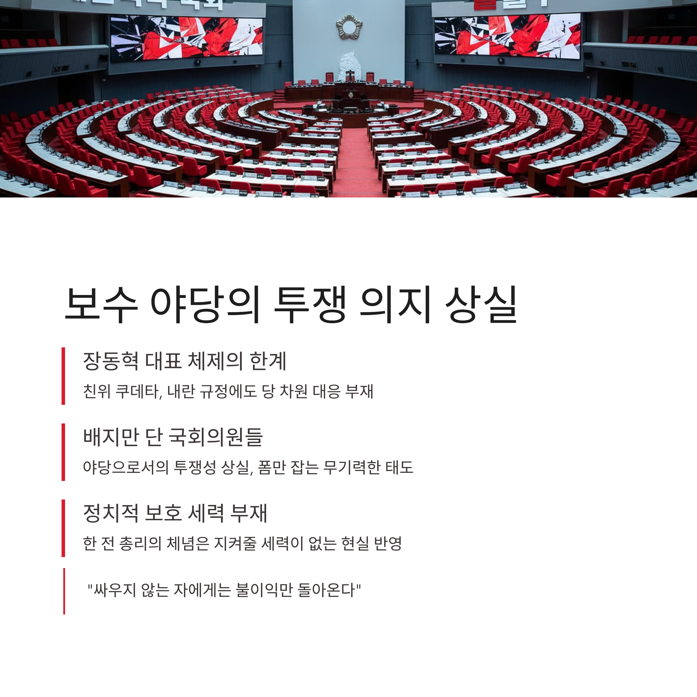 3. 무기력한 보수 야당: 국민의힘의 침묵과 투쟁 의지 상실