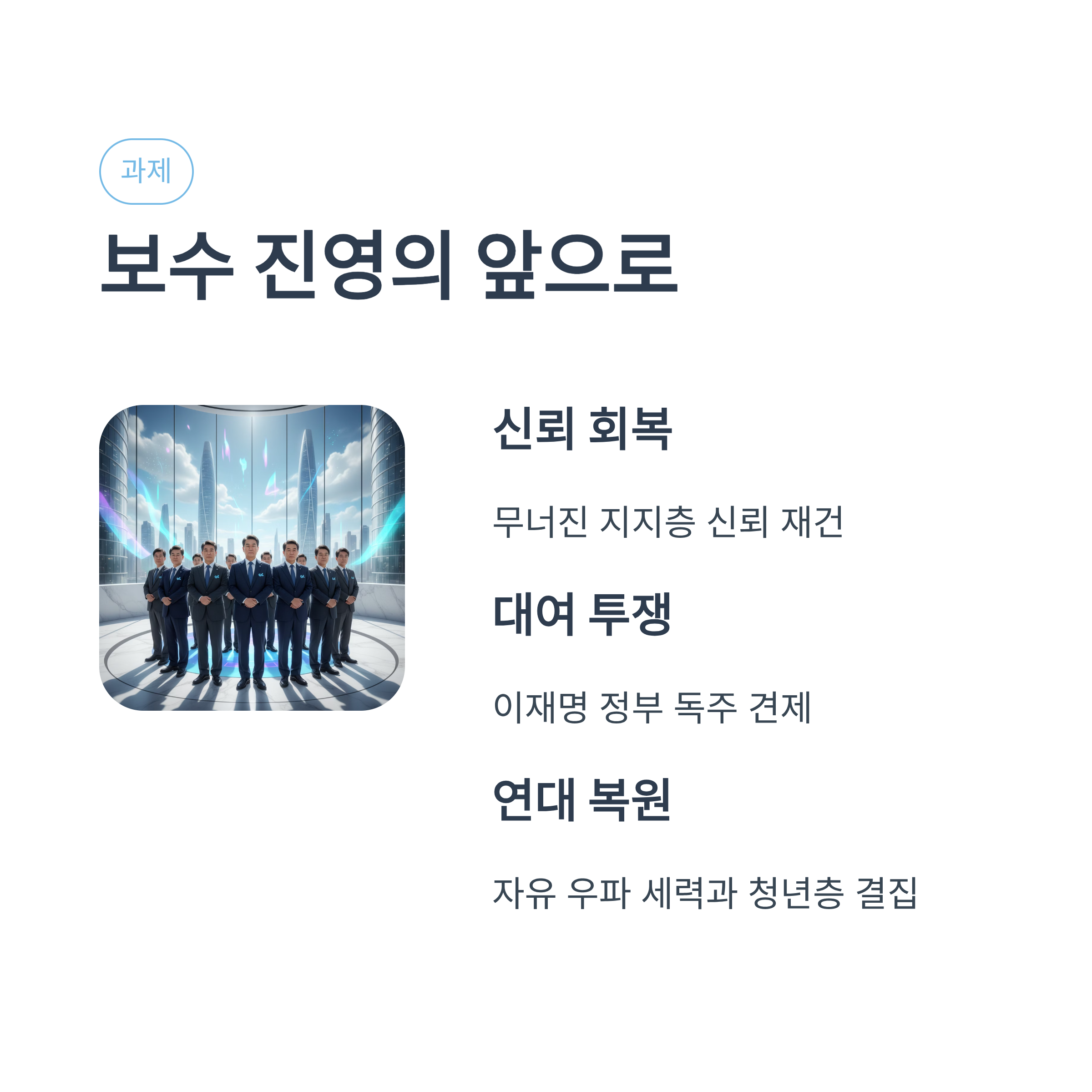 - 4. 결론: 내부 분열 종식과 대여 투쟁을 위한 보수 진영의 과제