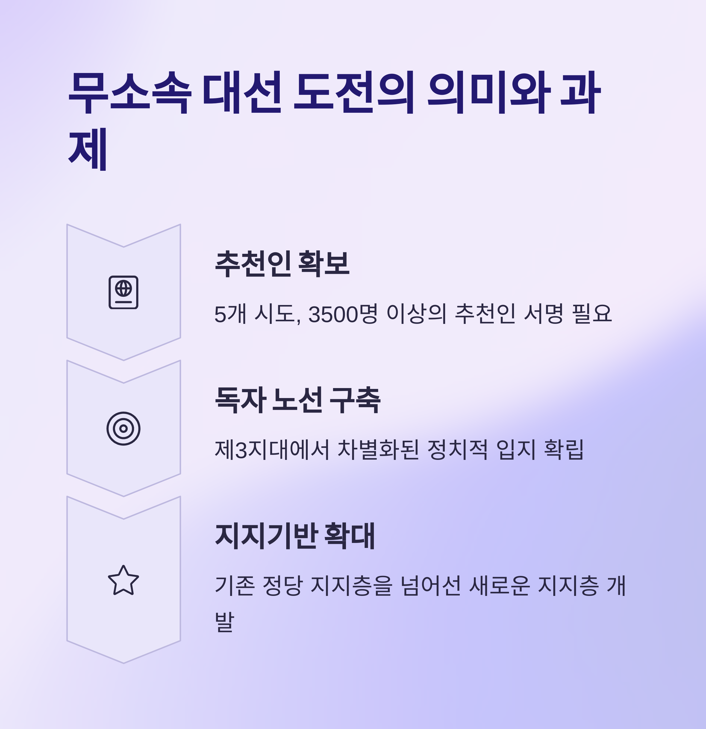 ✔️ 그녀의 출마가 제3지대 정치 구도에 새로운 변수가 될 가능성이 주목받고 있습니다.