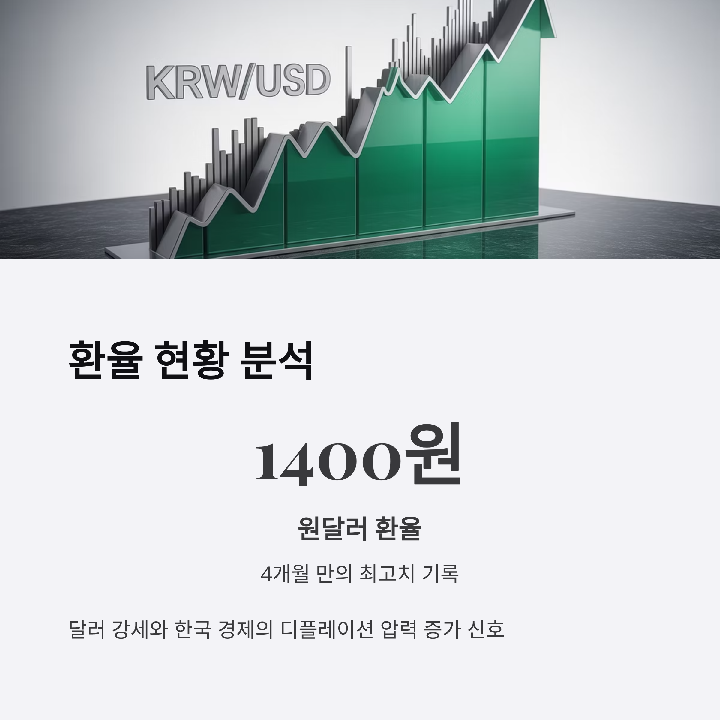 4. 현재 원·달러 환율은 1400원대를 돌파하며 최근 최고치를 기록.