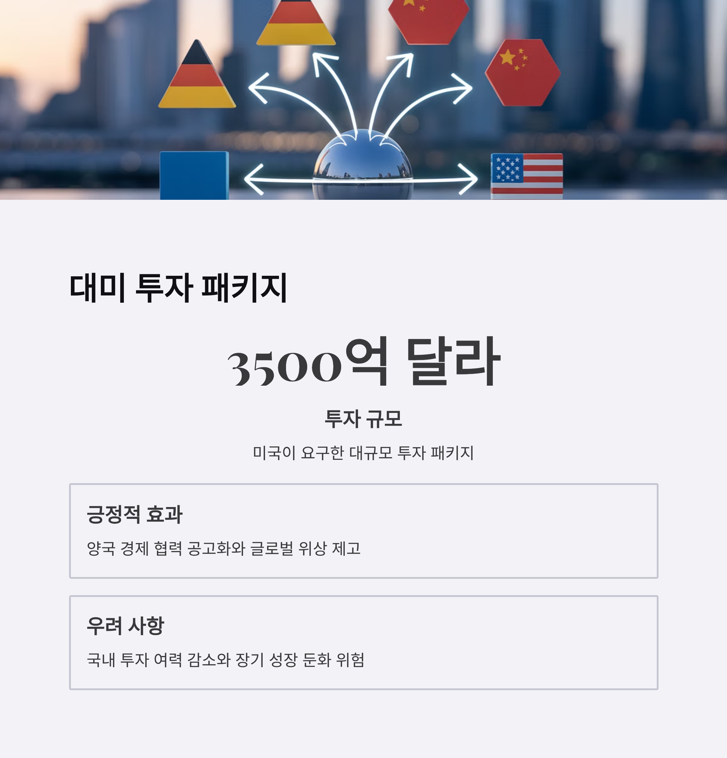 | Q. 대미 투자 3500억 달러 패키지가 한국 경제에 미치는 영향은? |