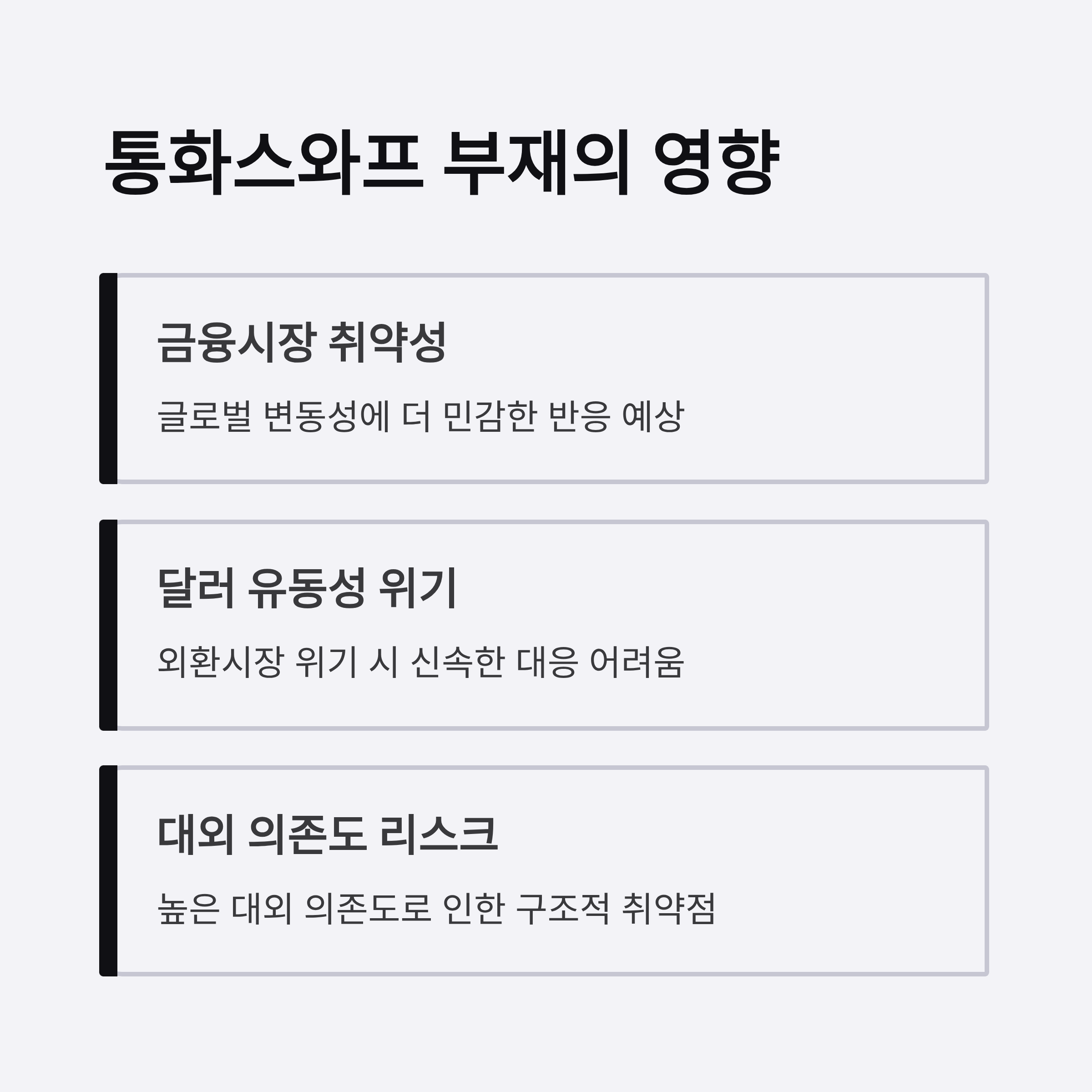 | Q. 통화스와프 부재는 한국 경제에 어떤 영향을 미칠까요? |
