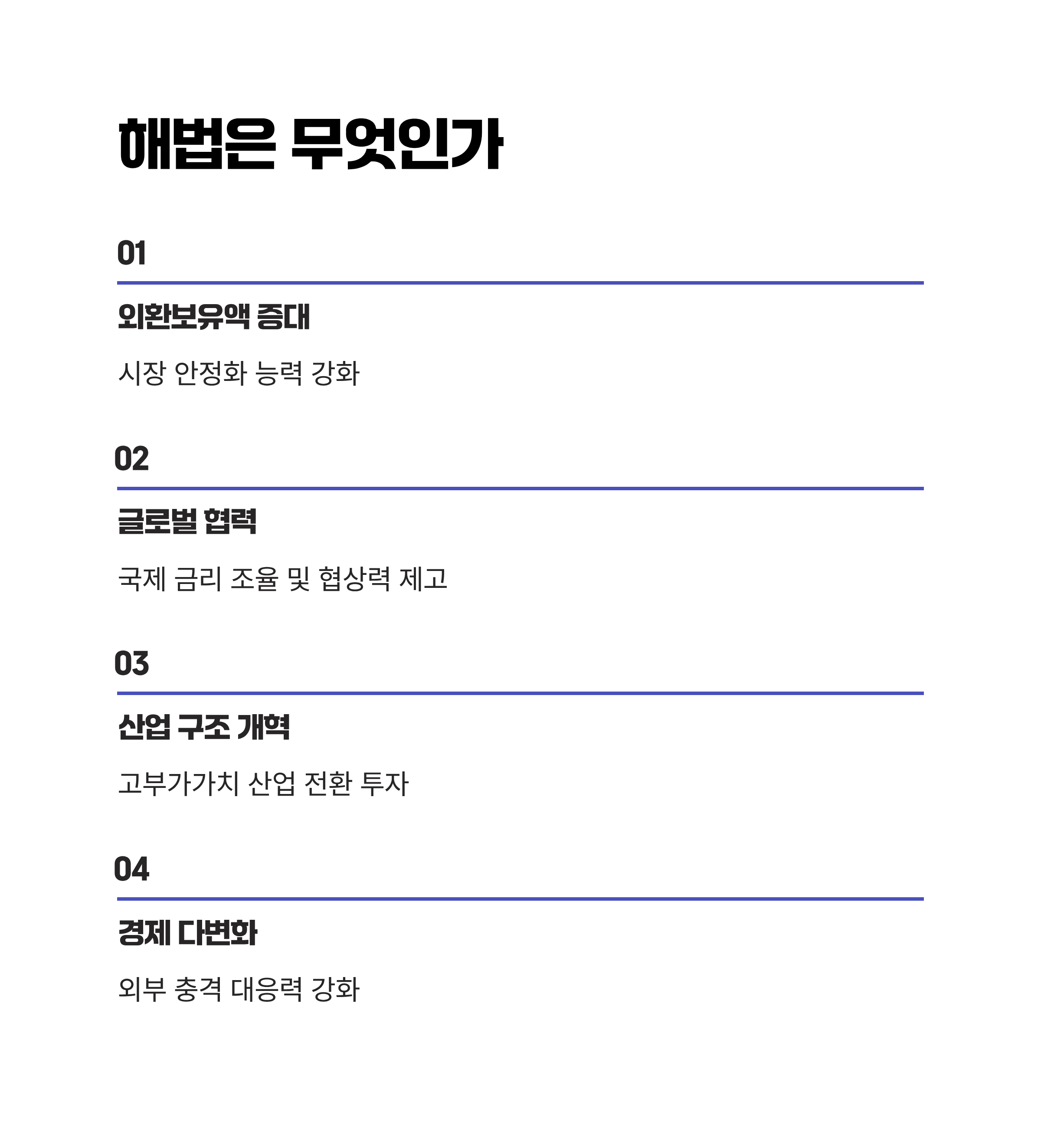 | Q. 국가 차원에서 환율 안정을 위한 실효적인 대책은 무엇인가요? |