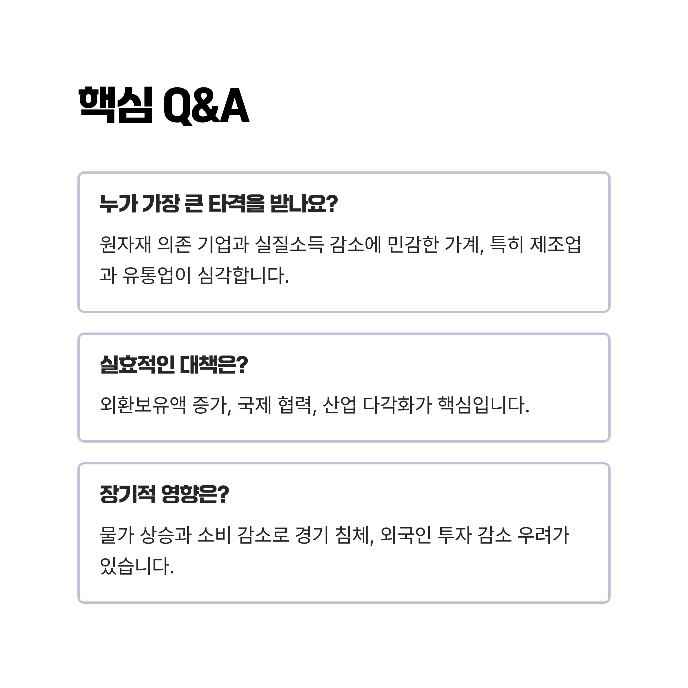 | Q. 환율 상승이 가장 심각하게 타격을 줄 대상은 누구인가요? |