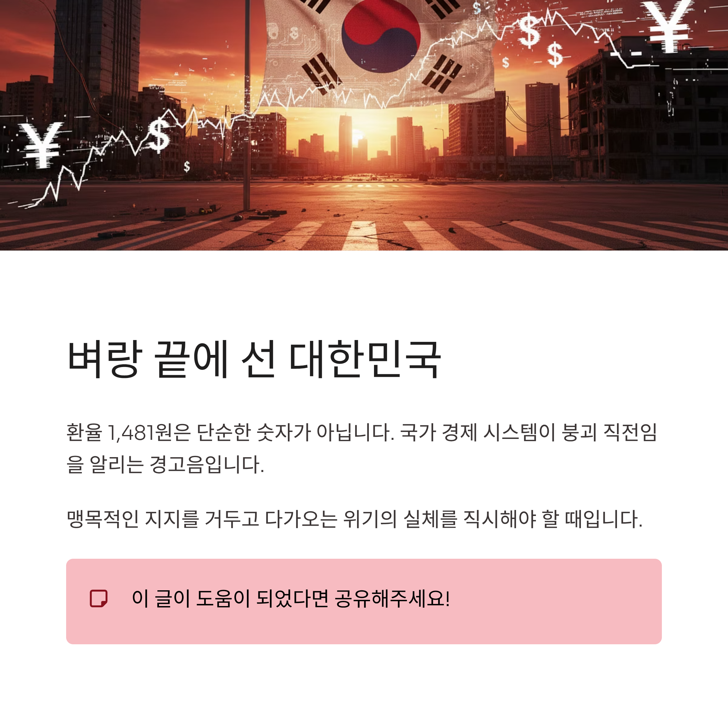 - 4. 결론: 현실화된 국가 부도 위기와 맹목적 지지에 대한 강력한 경고
