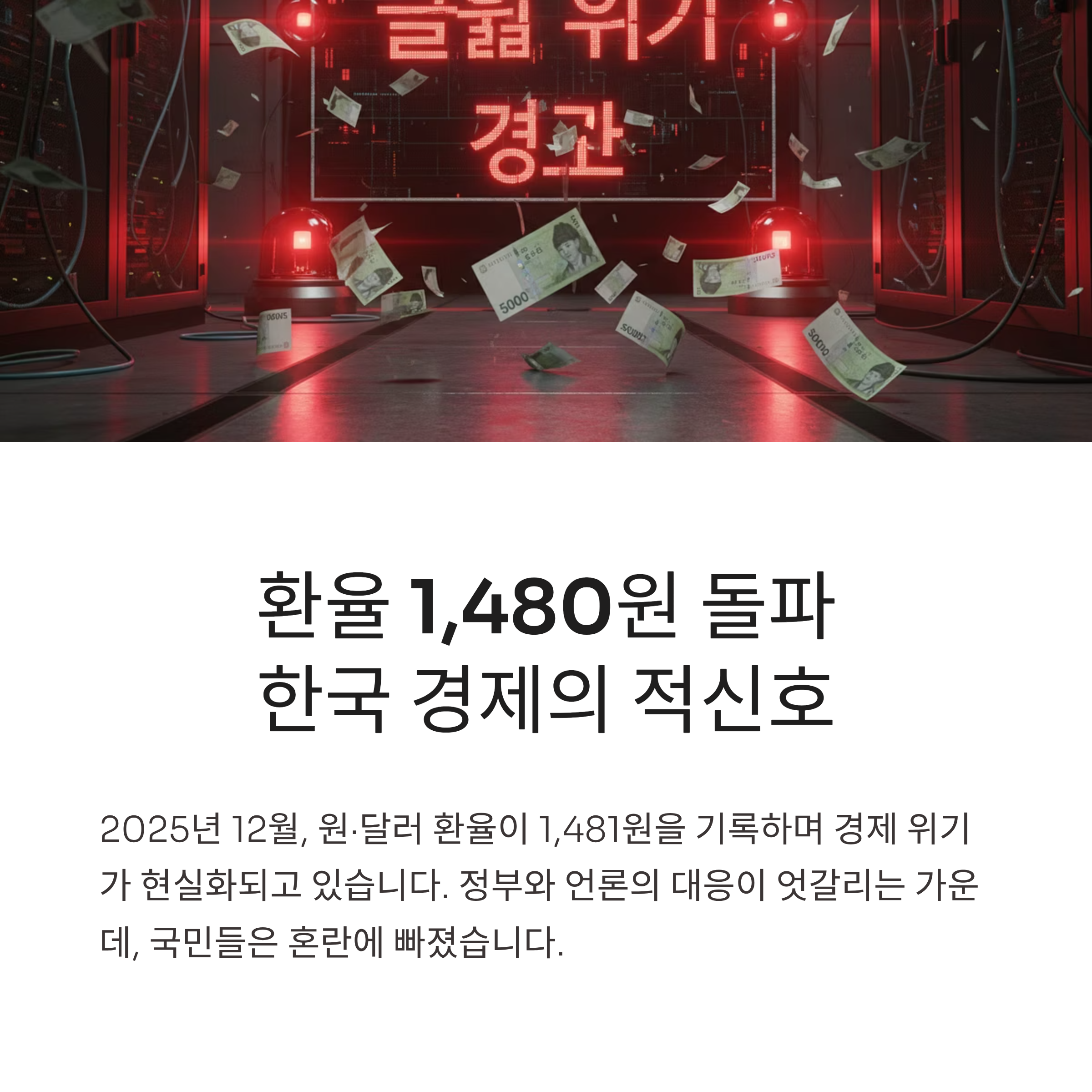 대한민국 경제가 원·달러 환율 1,481원 돌파라는 초비상 사태에 직면했습니다. 정부와 일부 언론은 '서학 개미'에게 책임을 전가하며 국민의 눈을 가리고 있습니다.