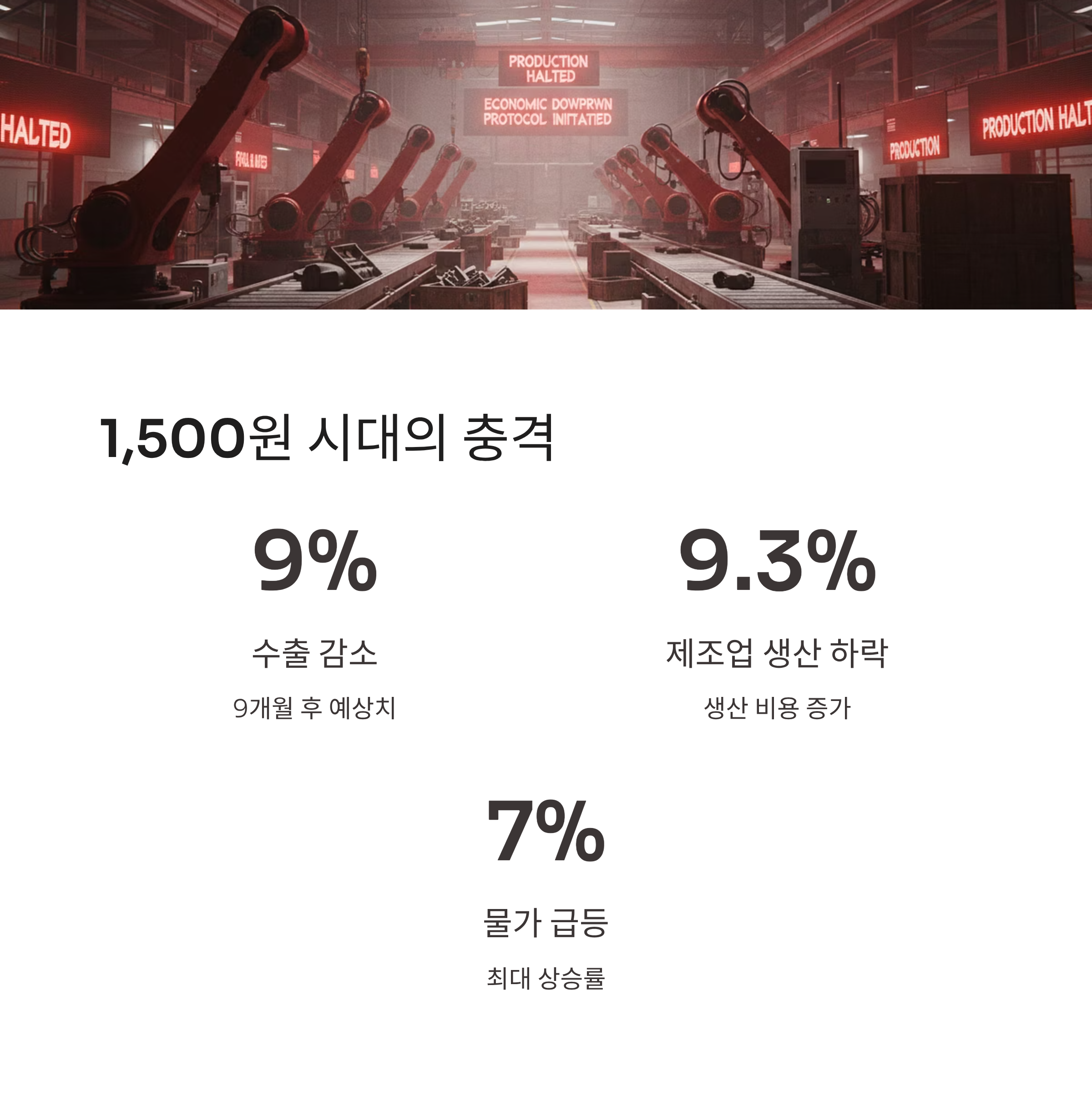 | 수출 | 9% 감소 (9개월 후) | 원자재 수입 비용 폭등으로 인한 경쟁력 상실 |