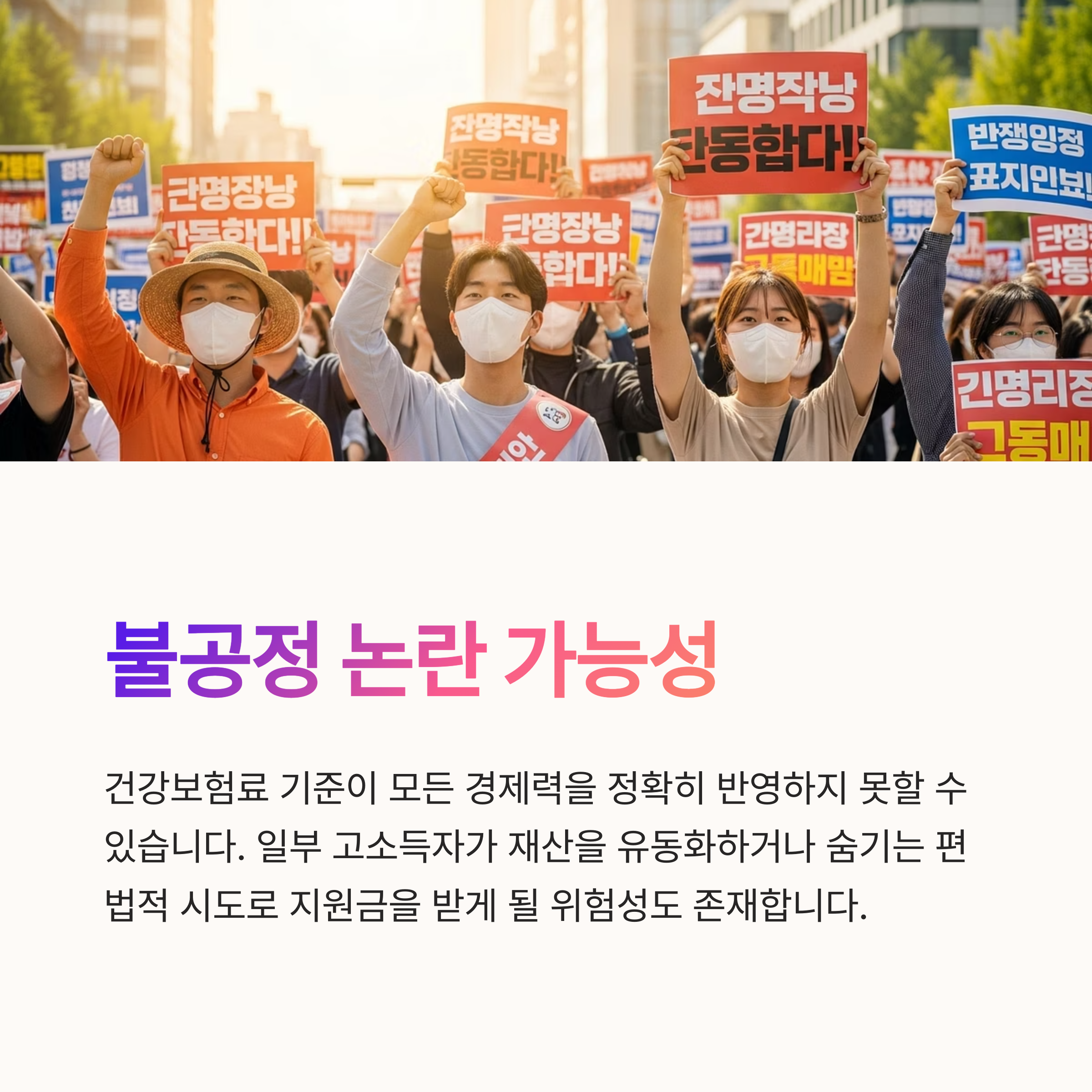 상위 10% 산정 방식에서 가장 중요한 기준이 되는 것은 바로 건강보험료입니다. 이는 소득뿐만 아니라 재산과 금융자산까지 반영하는 종합적인 지표로, 소득만으로 판별하기 어려운 경제력을 가늠할 수 있다는 특징이 있습니다. 직장가입자의 경우 월급에서 산출된 납부 보험료를 기준으로 하며, 지역가입자는 소득뿐 아니라 부동산이나 차, 금융자산 등의 자산도 함께 고려됩니다. 이 방식은 특히 고액 자산을 보유하고 있는 자영업자나 투자자들도 판별에 포함되도록 하려는 취지에서 나온 것입니다. 다만, 이를 기반으로 상위 10%에 속하지 않기 위해 일부 재산을 유동화하거나 숨기는 편법적인 시도에 대한 우려도 나오고 있습니다.