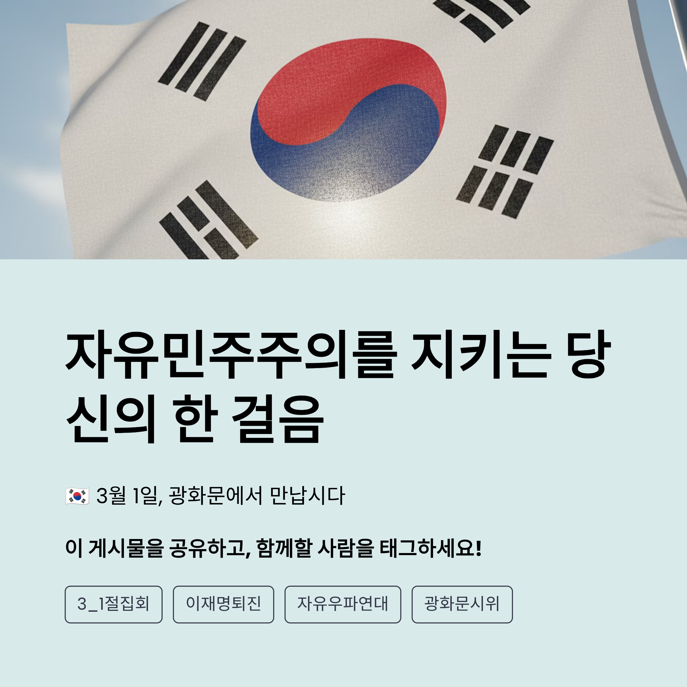 오는 3월 1일 예정된 자유우파 진영의 대규모 집회는 이재명 정권의 폭주를 막고 무너진 법치를 바로 세우겠다는 보수 세력의 총력전이 될 전망입니다. 윤석열 전 대통령과 전 정권 인사들에 대한 사법적 단죄 움직임, 그리고 대법원 및 선거 제도와 관련된 논란은 국민적 갈등을 최고조로 끌어올리고 있습니다. 4개 정당의 연대와 학생들의 거리 투쟁 동참은 현 시국이 단순한 정치적 대립을 넘어 체제 전쟁의 양상으로 치닫고 있음을 시사합니다. 국민들은 이번 3.1절 집회를 통해 현 정권에 대한 비판 여론이 얼마나 광범위하게 확산되어 있는지, 그리고 보수 진영이 실질적인 견제 세력으로 재결집할 수 있을지를 목격하게 될 것입니다. 자유민주주의와 법치 시스템의 존립 여부가 걸린 이번 사태에 대해, 여야 정치권은 물론 모든 국민이 엄중한 위기의식을 가지고 지켜보아야 할 것입니다. 대한민국이 베네수엘라와 같은 체제 붕괴의 길로 들어설지, 아니면 헌법 정신을 수호하며 정상 궤도로 복귀할지, 다가오는 3월은 그 분수령이 될 것입니다.
