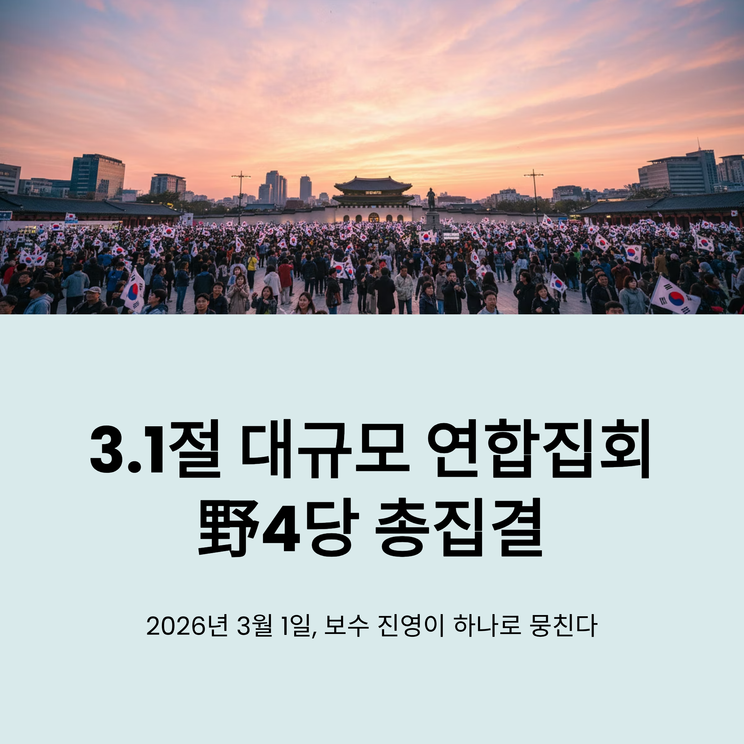 2026년 2월 25일 현재, 제107주년 3.1절을 앞두고 대한민국 보수 진영에 전운이 감돌고 있습니다. 이재명 정부 출범 이후 자유민주주의 시스템이 위협받고 있다는 위기감이 고조되면서, 그동안 흩어져 있던 자유우파 세력들이 '정권 퇴진'이라는 기치 아래 대규모 연대를 선언했습니다. 이번 글에서는 우리공화당, 자유민주당, 자유와 혁신, 자유통일당 등 4개 정당이 결성한 3.1절 자유우파 4당 연대 총궐기의 배경과 2월 26일 기자회견부터 3월 1일 광화문 총집결로 이어지는 일련의 일정을 상세히 다룹니다. 또한 전직 대통령에 대한 사법적 압박과 사법 제도 변경 시도에 맞선 시민사회의 저항 움직임을 분석합니다.