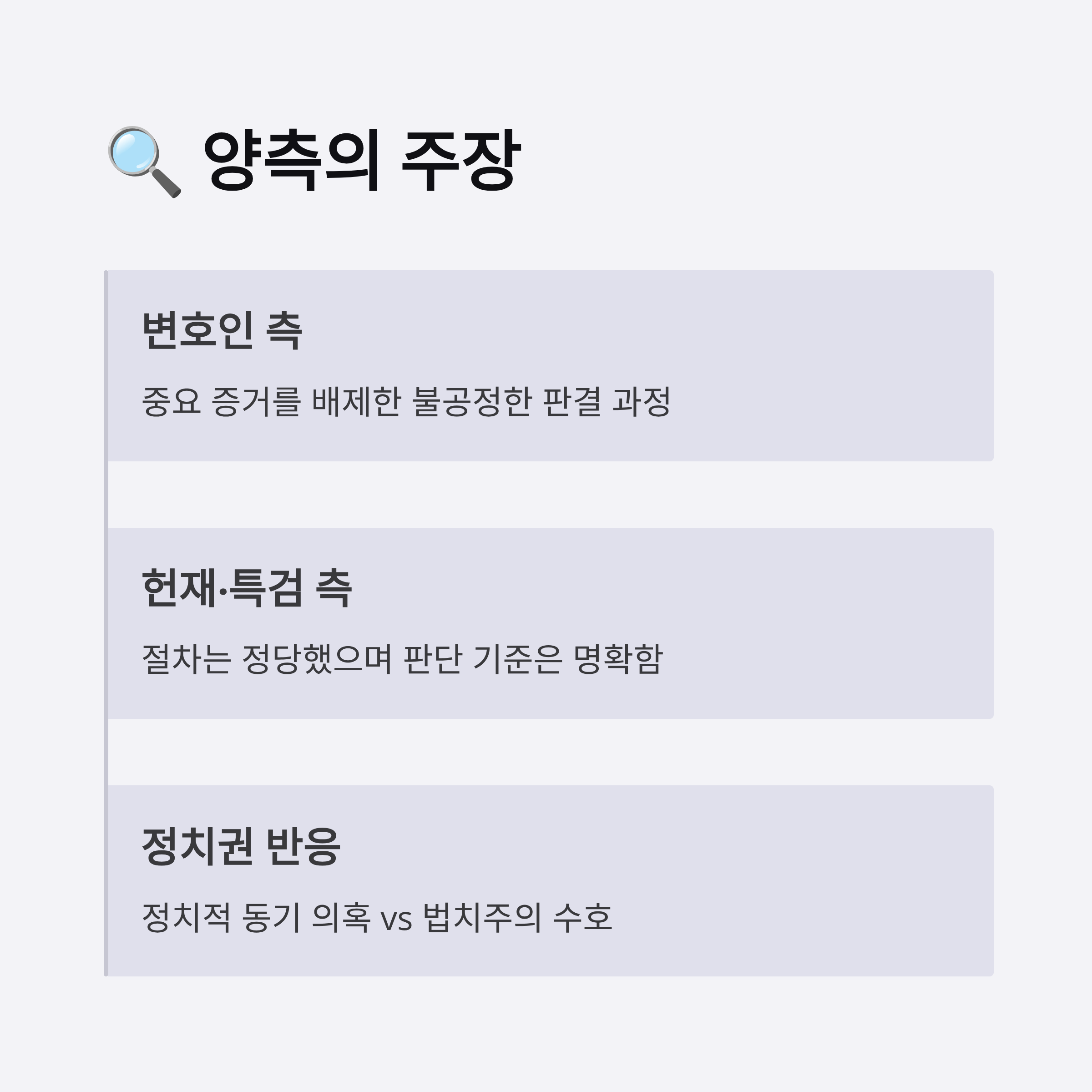 이번 논란은 법적 신뢰 훼손과 함께 정치적 혼란을 가중시키고 있습니다.
