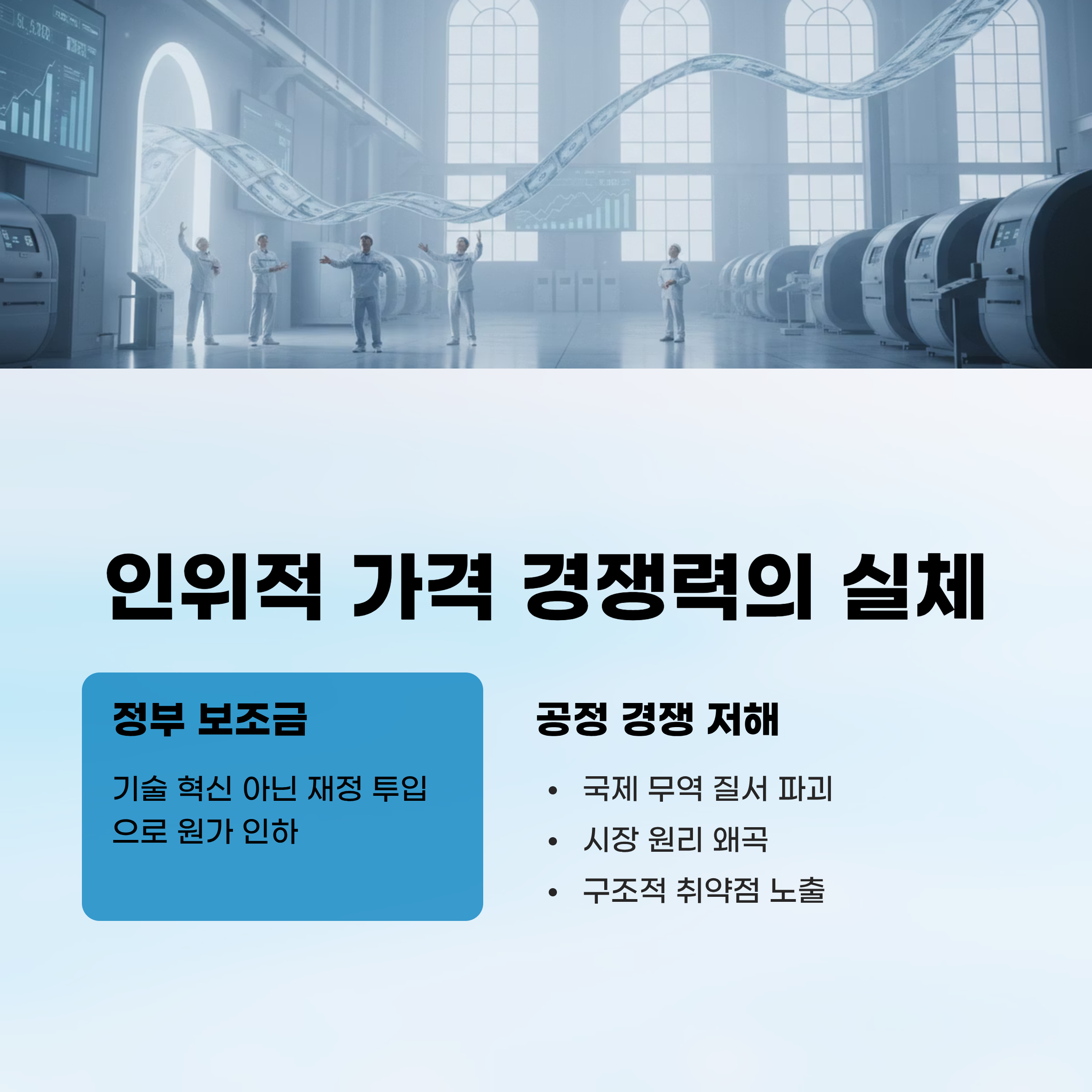 중국 경제 위기의 근원은 부동산 시장의 붕괴와 민간 소비의 극심한 위축에 있습니다. 정상적인 국가라면 내수를 활성화해 문제를 해결하겠지만, 중국 정부는 '수출'에서 답을 찾으려 하고 있습니다. 문제는 이 수출 경쟁력이 기술 혁신이 아닌, 정부의 막대한 보조금 투입을 통한 인위적인 가격 인하로 만들어졌다는 점입니다. 중국 정부는 특정 산업에 보조금을 퍼부어 원가 경쟁력을 높이고 있는데, 이는 국제 무역 시장에서의 공정 경쟁을 저해하는 주된 요인입니다. IMF는 이러한 방식이 중국 경제 내부의 구조적 취약점을 드러내는 방증이라고 분석하고 있습니다.