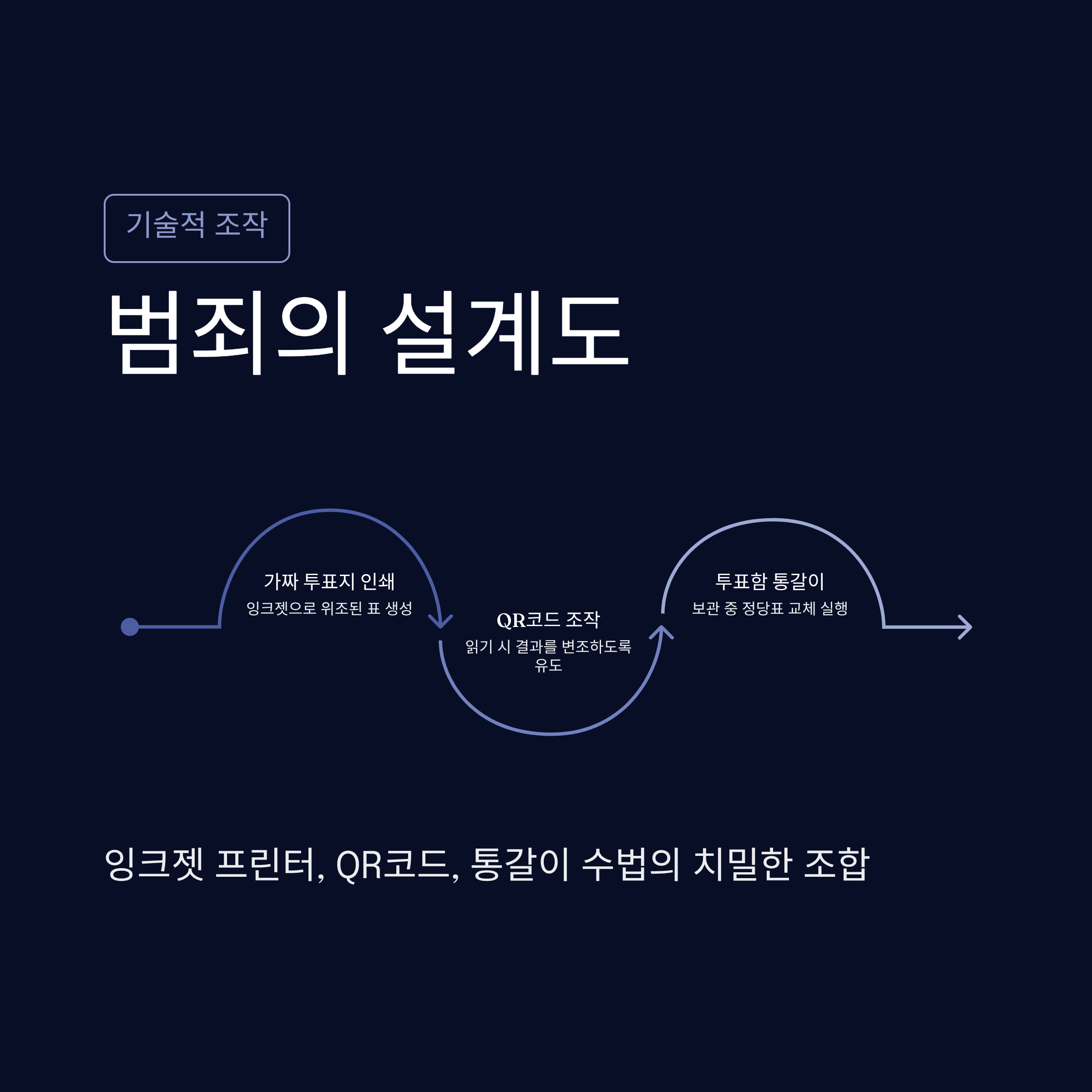 - 조작의 기술적 설계: 잉크젯 프린터, QR코드, 그리고 사전투표의 허점.