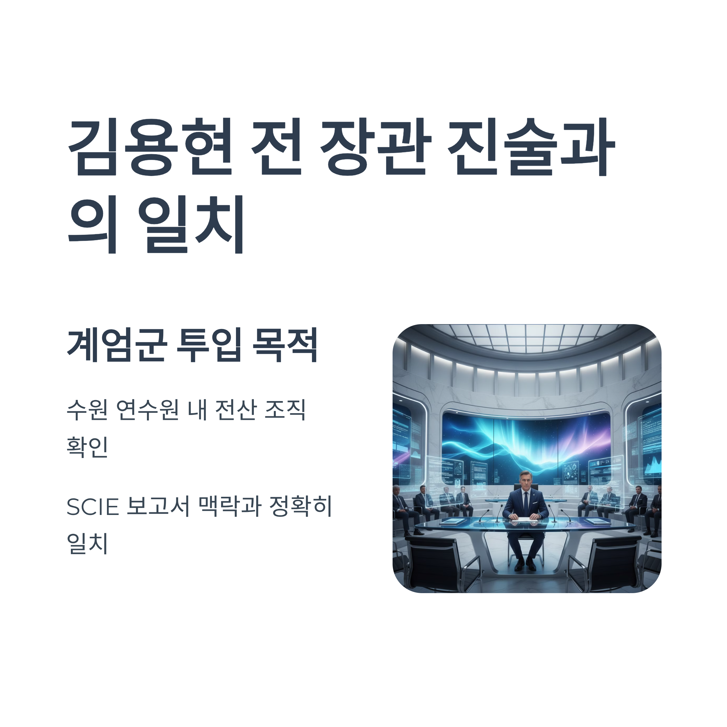 12.3 계엄과의 연관성: 김용현 전 국방부 장관 측이 언급했던 "수원 연수원 내 전산 조직 확인 목적의 계엄군 투입" 진술과 SCIE 보고서의 맥락이 일치합니다.