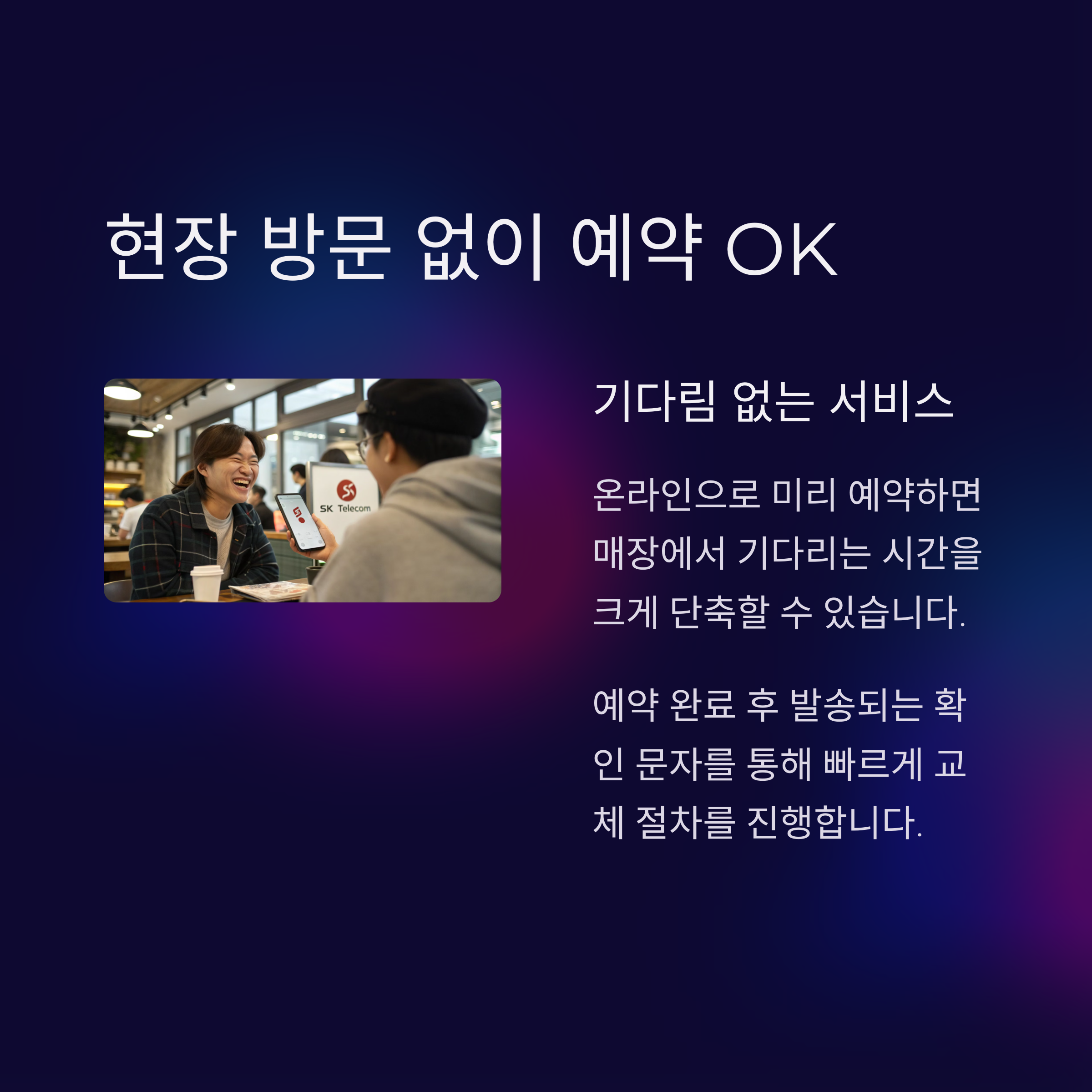 또한, 온라인 예약 시스템은 대기 시간을 줄이고 혼잡도를 완화하는 역할을 합니다. T월드 앱과 홈페이지를 활용하여 지역 매장 선택부터 방문 시간 예약까지 가능하게 함으로써, 고객 만족도를 향상시킬 수 있는 효율적인 운영 방식을 보여줍니다.