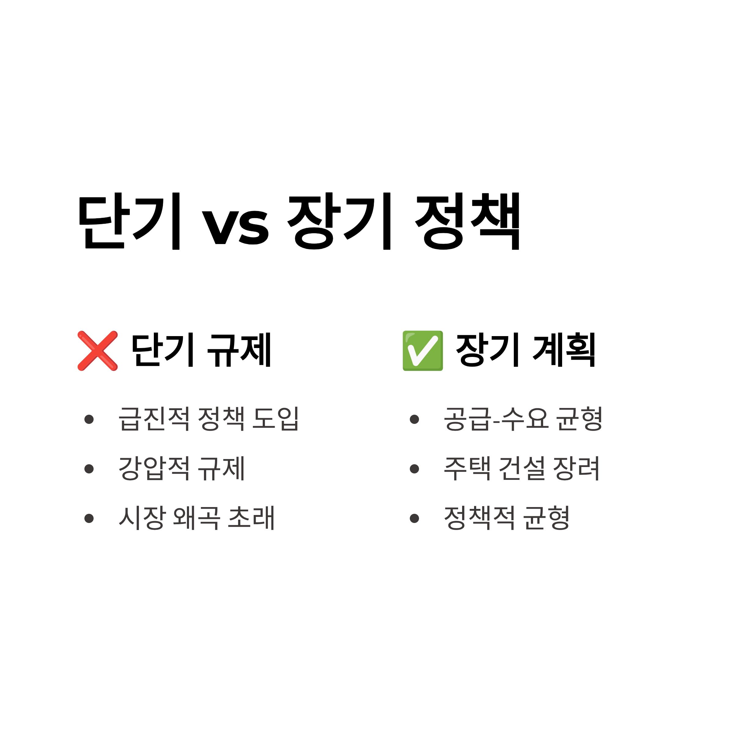 | A. 주택 공급 확대와 장기적 시장 자율성 강화가 핵심 대안입니다. 투기 행위와 정상 투자 활동을 명확히 구분해 정책을 설계해야 합니다. |