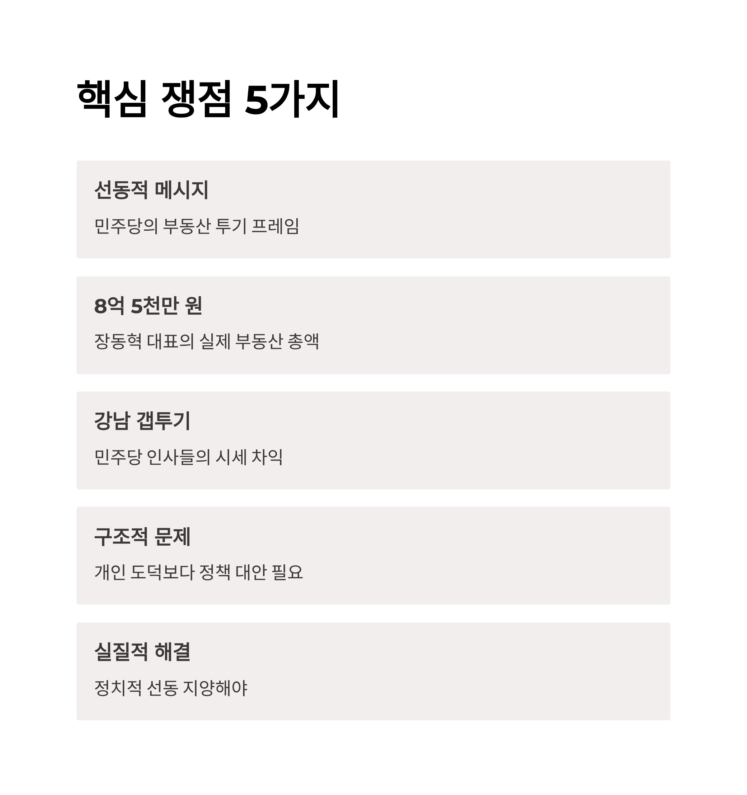 태그: 부동산 논란, 장동혁, 민주당, 상속 자산, 정치 프레임, 갭투자, 부동산 정책